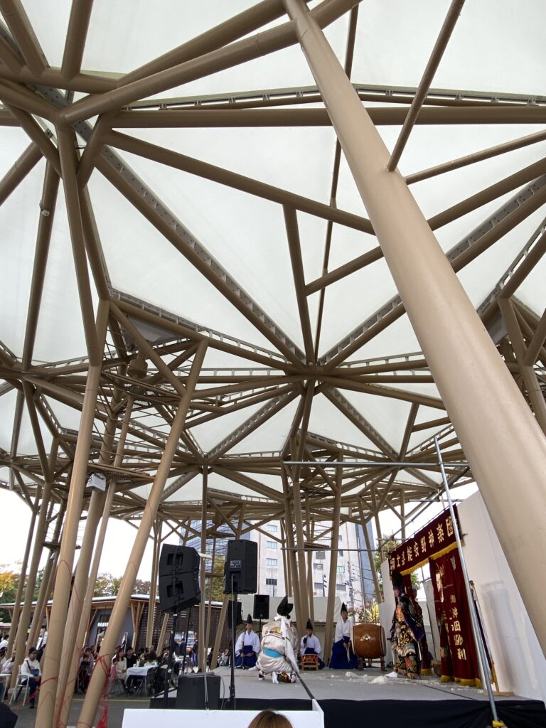 ゲートパークの中心ともいえる木で組んだような大きな屋根のあるステージ。