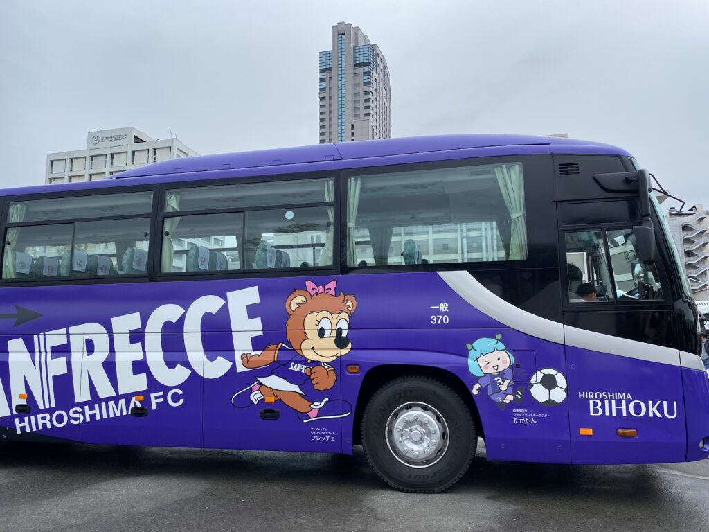 バスが何台も並んでる!!人もたくさん集まってる!!広島の各バス会社が集結しとる!!すごい!!