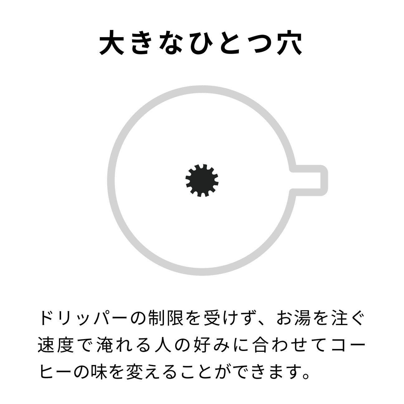 一度に注ぐだけでもブレなくコーヒーを淹れられる秘訣がこの形にあります。