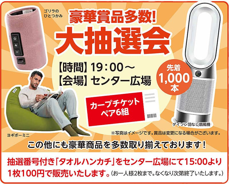 カープチケットや豪華賞品が当たる大抽選会まで!